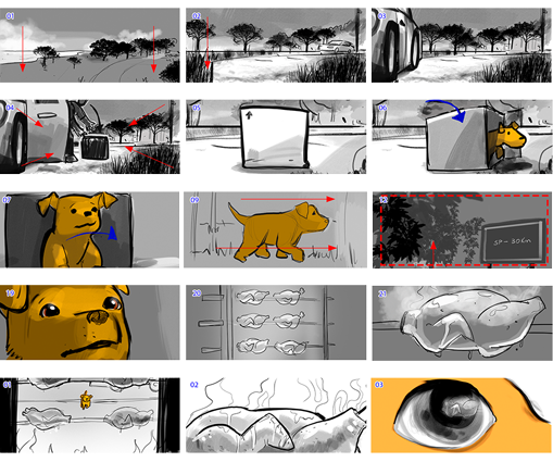 Ao longo do tempo, percebo que storyboard é muito mais que uma tradução do roteiro em planos. Storyboard tem também a função reflexiva: a decupagem das cenas é o momento de o Diretor discutir graficamente os planos, quase como um teste, onde se planeja a narrativa visual do filme.
