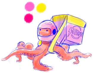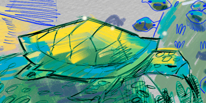 Usei o programa Krita para desenhar essa animação. Principalmente por conta de seus pincéis (brushes) que remetem a materiais que o Léo teria em seu estojo. Para o contorno dos cenários e do Caramelo, criei um pincel exclusivo que se assemelha a canetas esferográficas (tipo caneta BIC).
