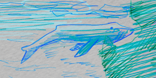 O terceiro flipbook foi o mais trabalhoso! Me inspirei em movimentos de combate feitos em animes como Naruto e personagens que voam na animação “A Viagem de Chihiro”. A coloração me custou mais de 6 canetinhas azuis.