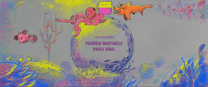 Inicialmente pensamos em fazê-la em forma de flipbook real, filmado. Mas seria complexo de encaixar os nomes e geraria muito mais custos. Nesse processo, já elaborei os design dos personagens.