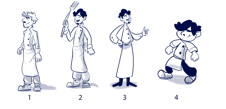 Imagem: Primeiros designs de personagem que produzi. Porém, ainda precisei repaginar esse visual.
