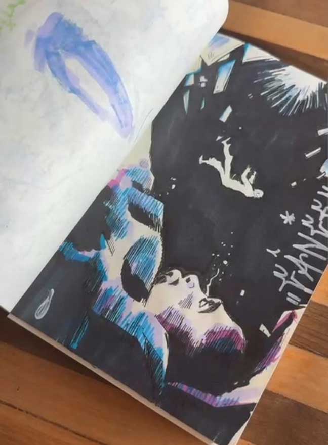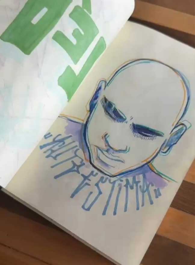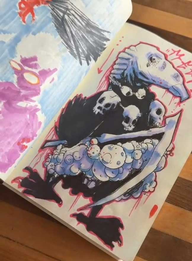 Imagem: algumas páginas internas do sketchbook de Léo, em sua fase mais otimista.