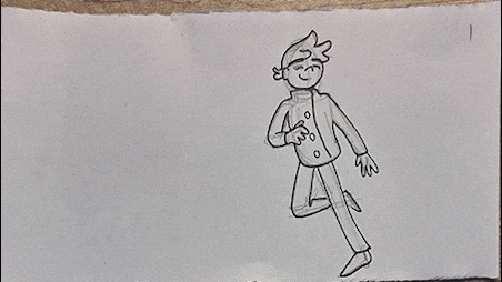 Já na pré-produção, a Diretora de Arte, Larissa Cambauva, notou meu trabalho. Logo, me chamaram para fazer uma animação feita em papel! A ideia era que eu produzisse flipbooks, que são livretos animados que, ao serem folheados rapidamente, criam uma ilusão de movimento (uma animação!).