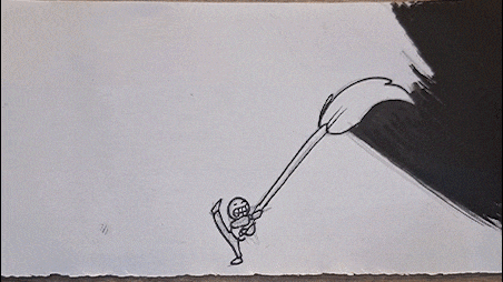 No primeiro flipbook usei a técnica da rotoscopia em alguns movimentos, pois eu queria que os passinhos de funk fossem fiéis (procurei alguns vídeos de tutorial de dança, inclusive!). Para a explosão final, me inspirei na animação de bomba dos games The Plucky Squire e Legend of Zelda.